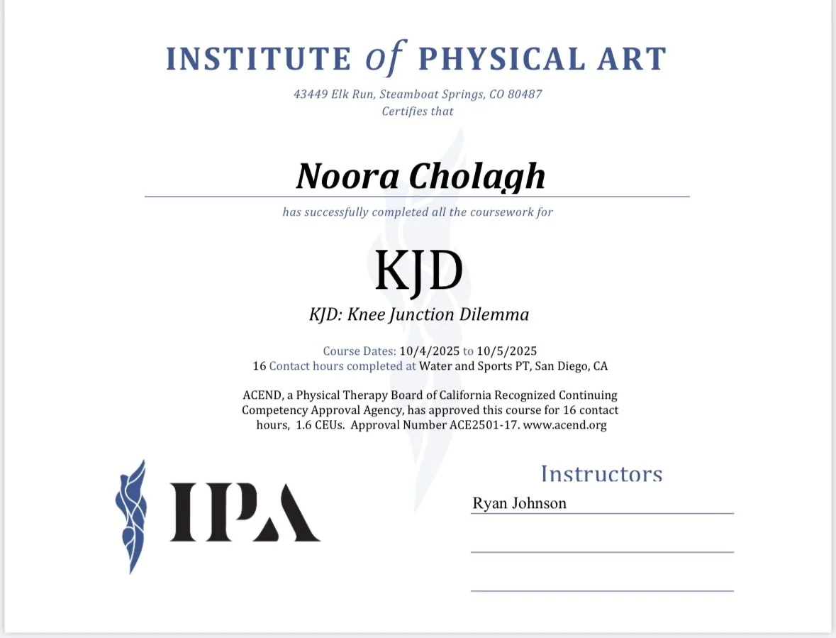 To celebrate completing my new certification, I’m offering 20% off your first physical therapy session for any knee-related condition.